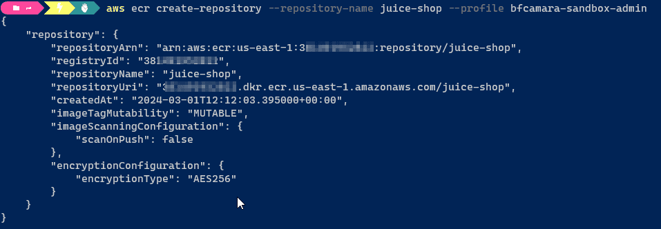 aws ecr create-repository --repository-name juice-shop