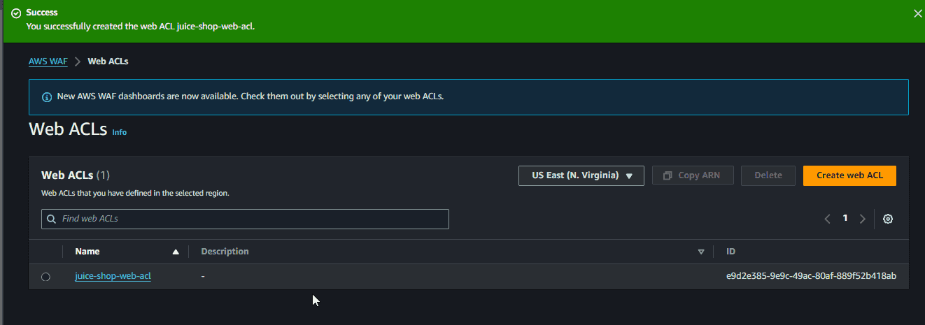 AWS WAF Web ACl list