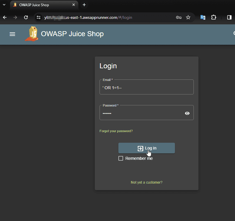 Juice Shop Login SQL Injection failed