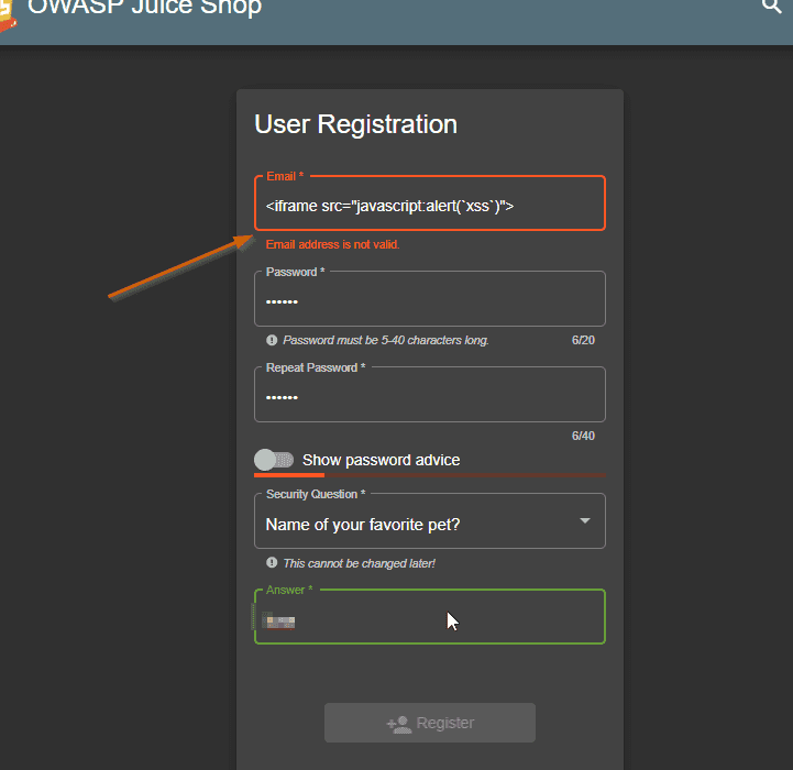Juice Shop XSS Failed