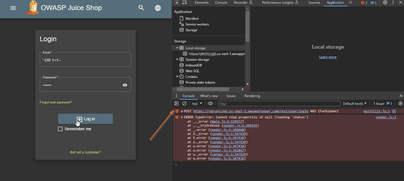 Juice Shop Login Console Errors